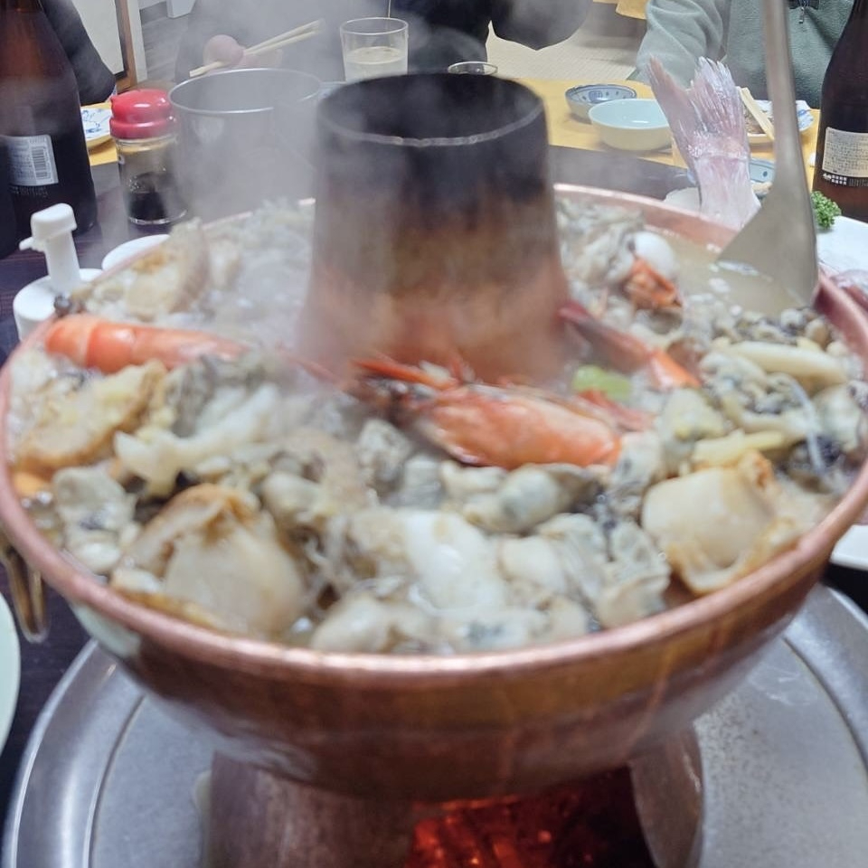 熱々の鍋に海鮮がふんだんに入って、とてもいい出汁が出て美味しいらしいです!